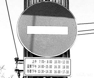 六一路上高懸的禁行牌。 (聽(tīng)雨品茗 攝)