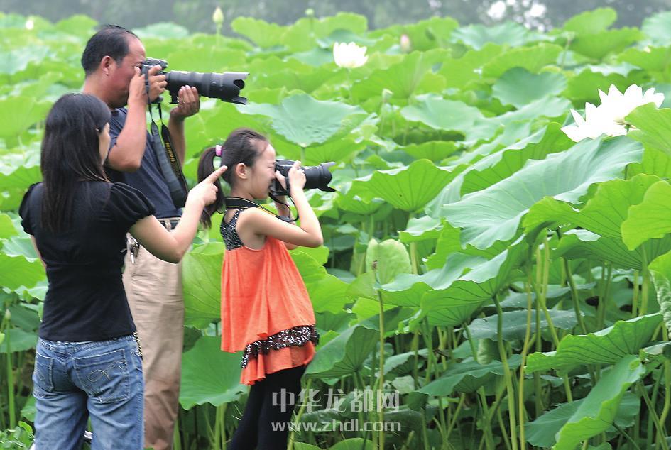 龍湖荷花吸引了許多游人。(lcx 攝)