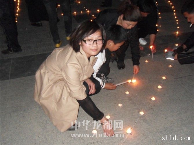 4月18日晚,在市區五一廣場,網友點燃了為玉樹災區祈福的蠟燭。