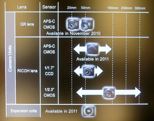 繼索尼E口鏡頭之后,德國(guó)Photoscala網(wǎng)站也公布了理光GXR系統(tǒng)的發(fā)展路線圖。其中的亮點(diǎn)是在2011年理光將推出多款組件,但路線圖中并未說(shuō)明這些組件支持何種接口。在此前的傳聞中已經(jīng)提到了M4/3模塊,而徠卡M口和哈蘇口的原型機(jī)甚至也已流傳了數(shù)月。我們現(xiàn)在只能等待理光在2011年揭曉一切謎底了。