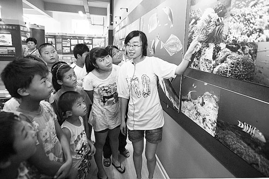 7月9日,來自杭州、金華等地的大學生志愿者,帶著結(jié)對幫扶的100多名民工子弟,走進海洋科技體驗館。胡社友攝(資料圖片)