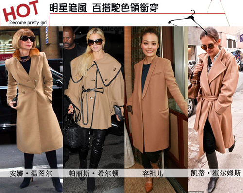 除了那些品牌,國內外明星們也很是喜愛駝色大衣。容祖兒的長款西服駝色大衣讓她看起來十分帥氣,而帕麗斯·希爾頓的收腰大翻領款駝色大衣卻讓她顯得女人味十足。每位追求時尚的女孩都應該擁有一件駝色大衣,用它換掉千篇一律黑色大衣。它帶來的都市時尚感一定會你愛不釋手。你最想擁有哪款優雅奢華感的駝色大衣呢? ?