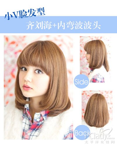齊劉海+內彎波波頭瘦臉指數:★★★★
