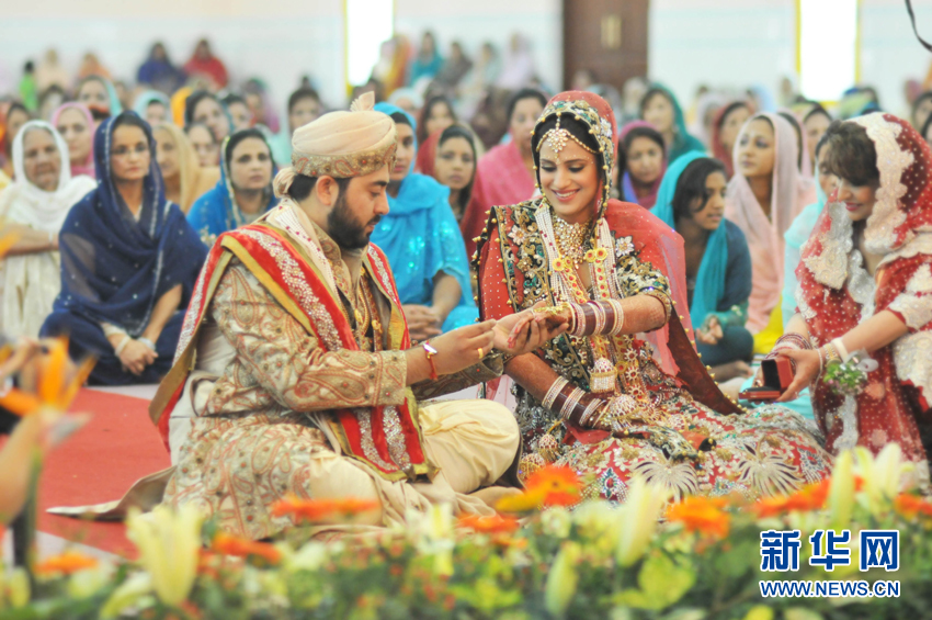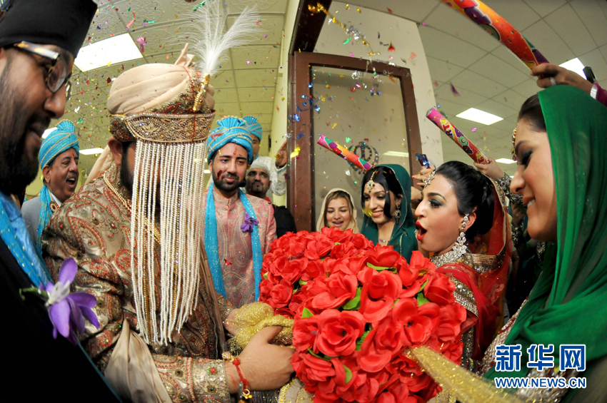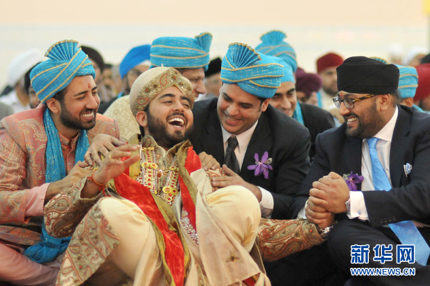 ????11月27日,在馬來西亞吉隆坡的一座錫克廟舉行的婚禮上,新郎接受朋友的祝賀。當天在吉隆坡的一所馬來西亞最大的錫克廟中,一對錫克族新人舉行一場傳統的婚禮。新郎家人抵達錫克廟宇前即大展舞蹈歡慶。婚禮儀式前,新郎需要經過新娘的姐妹團的考驗方能夠進入禮堂。新娘抵達后,在錫克廟宇住持的主持下舉行錫克宗教儀式,儀式中新娘和新郎接受雙方父母的絲帶后繞圈而行。最后新人互相為對方帶上婚戒,在住持祝福下完成一場錫克傳統的婚禮。新華社發(張紋綜攝)