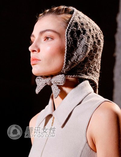 將秋冬經典的針織鉤花元素與保暖扮靚的頭巾混合,比常見的印花絲巾更具質感和親和力。來自Rochas秋冬秀場的針織頭巾x辮子發髻,勢必在本季吹起“溫暖牌”祖母手工針織頭巾風潮。