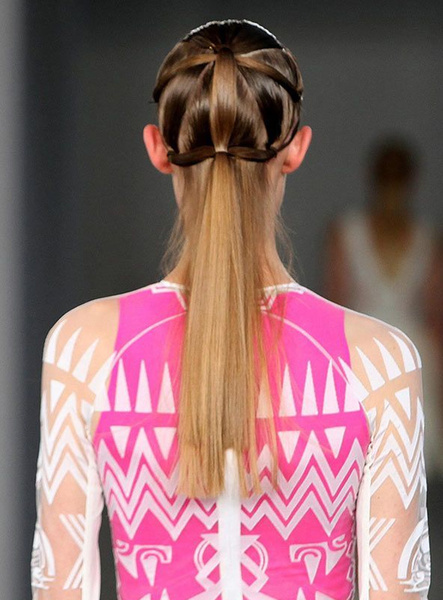 ??? 2、David Koma S/S 2012。馬尾辮的形式賦予了多層次感
