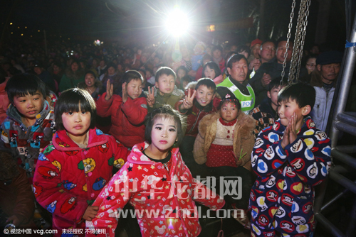 孩子們跑到臺(tái)前跟著演員手舞足蹈