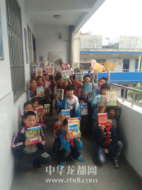 學(xué)生展示捐贈(zèng)的圖書