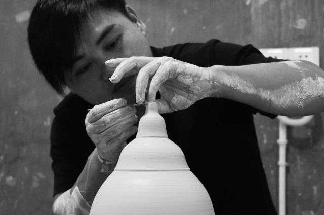????瓷泥貴,為了多上手,占紹林就撿些廢泥浸泡后反復(fù)練習(xí);拉坯機少,他就趁著師傅休息偷偷去練……一年半出師后,生性開朗的占紹林廣交朋友,不斷吸取、融合不同技法,數(shù)年時間便攻克景德鎮(zhèn)拉坯難題,將原來需要三次成型的瓷器大件一次成型,令老工匠們也贊嘆不已。
