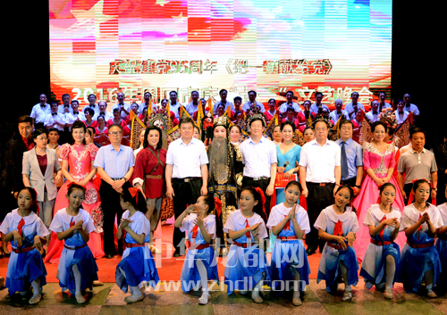 演出結束后,徐光等市領導與演職人員合影留念。 記者 沈湛 攝