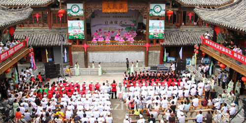 ????2016中國·淮陽龍湖賞荷旅游月活動除舉行開幕式(如圖)外,其間還將舉行周口市第三屆“龍湖杯”旅游形象大使選拔賽、“清風荷韻”書畫名家作品展及“微腐敗治理”廉政征文活動、首屆淮陽沙窩西瓜節、國家濕地公園龍湖龍舟賽、千人共行“中華成人禮”及花卉盆景展等7項系列主題活動。