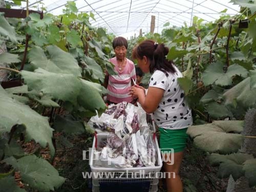 ????在農(nóng)場的葡萄大棚里,一串串葡萄被套上了塑料袋,形成了五顏六色的奇特景觀,社員正忙著采摘裝箱(如圖)。農(nóng)場技術(shù)人員介紹:“給葡萄套袋,可以明顯改善果實(shí)品質(zhì),保護(hù)果實(shí)不受病蟲害侵襲,減少農(nóng)藥殘留,防鳥啄食,改善果實(shí)外觀,提高果品檔次,是當(dāng)前生產(chǎn)高品質(zhì)、無公害葡萄的有效措施。”