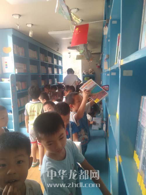 ????本報訊 8月22日,一輛帶著5000多冊兒童讀物的流動圖書車,從北京來到鄲城縣秋渠鄉希望小學。該校300多名留守兒童有的上車讀書,有的簽字借閱,都特別高興(如圖)。