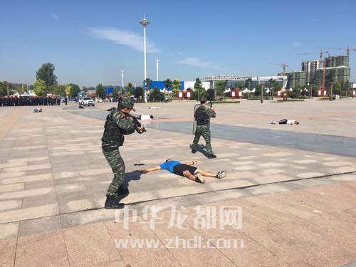 ????當日9時許,2016反恐實戰應急拉動演練正式開始。按照警情設置,此次實戰演練針對周口火車站這一重點反恐目標,以暴恐嫌疑人突襲、砍殺、綁架乘客為預想方案實施反恐應急聯動。演練模擬5名暴恐嫌疑人偽裝成游客混入周口火車站廣場制造事端,砍殺無辜群眾,并引爆一枚自制炸彈,因爆炸彈片飛濺起火,數名群眾受傷。接到報警后,市公安局迅速啟動反暴恐應急預案,武警、特警、消防、120急救、移動、電力等單位迅速到達現場,疏散游客、圍堵暴徒、封鎖路段。特警、武警處置分隊緊密配合,戰術推進,當場擊斃2名暴恐嫌疑人,另外3名暴恐嫌疑人見此情景,挾持2名人質躲入房間,負隅頑抗。在談判無果的情況下,指揮中心下達強突指令,武警、特警人員果斷行動,一舉抓獲3名暴恐嫌疑人,成功解救人質。