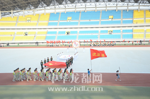 ????9月19日16時許,周口晚報記者在市三運會開幕式整場彩排現(xiàn)場看到,伴隨著主持人宣布彩排開始,國旗、會旗和會徽方陣率先入場,緊隨其后的是來自各縣市區(qū)的97支代表隊方陣(小圖)。當入場式結束所有參與人員離場后,市三運會開幕式文藝演出拉開帷幕。據(jù)了解,文藝演出共分《印象周口》《荷韻悠長》《難以忘槐》《崛起之路》《揚帆遠航》五大篇章。“我們參演的有舞龍?zhí)珮O、龍旗、古箏演奏等6個節(jié)目。”周口文昌中學相關負責人趙志偉說,他們學校共有540人參加市三運會開幕式文藝演出,表演的節(jié)目穿插在五大篇章之中。周口晚報記者了解到,除周口文昌中學外,參加開幕式文藝演出的還有周口幼兒師范學院、周口職業(yè)技術學院衛(wèi)生學院、周口市自行車協(xié)會等多家單位。