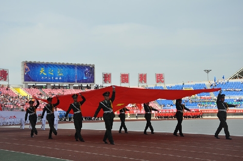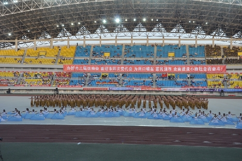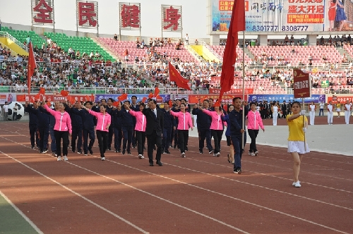 ????當日16時,國旗方陣、會旗方陣、彩旗隊、裁判員、運動員依次入場,一個個意氣風發的團隊引來現場觀眾陣陣掌聲和歡呼聲:周口川匯區代表團首先入場,他們步伐矯健,英姿勃發;市委辦公室代表團精神抖擻,意氣風發;市委宣傳部代表團邁著矯健的步伐走向主席臺……