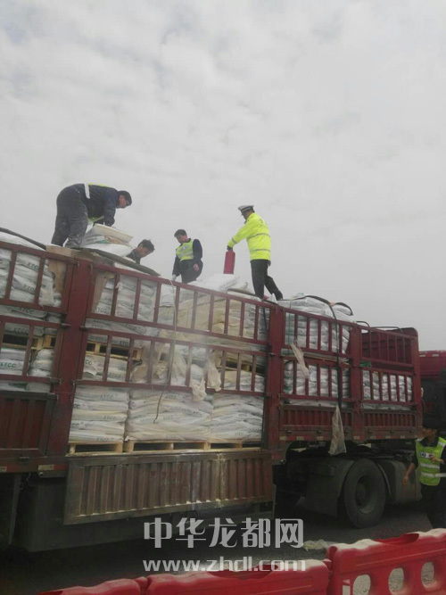 ????接到求助后,4位高速交警迅速趕往現場,并在第一時間把警情匯報給高速指揮中心。隨后,中隊長杜金濤帶領所有執勤民警全員參與救援。他們一邊設置警示區域,疏散圍觀群眾,一邊通知收費站和高速路政人員暫時禁止車輛駛入,防止次生事故發生。
