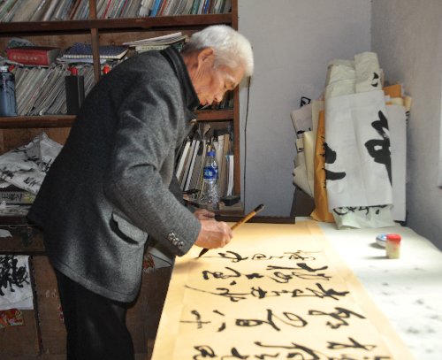 ????他自幼聰穎好學(xué),逢年過節(jié),火紅喜慶的對聯(lián)引起了他強(qiáng)烈的興趣,那瀟灑勁健的字體,引起他無限的遐想。