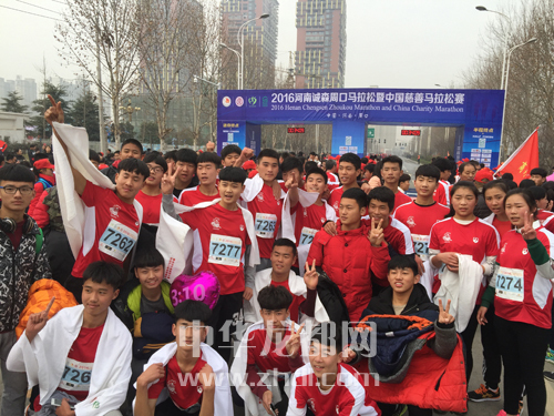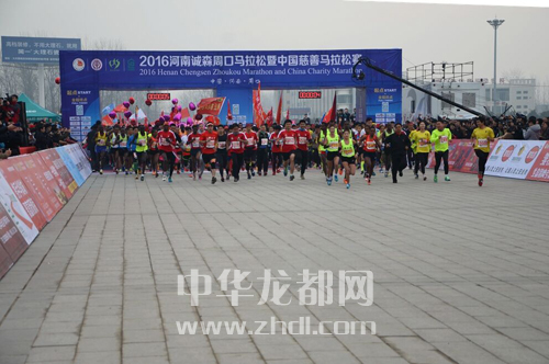 ????本報訊 千年周口情,萬眾馬拉松。12月18日上午,由中國田徑協會、中華慈善總會、河南省慈善總會、周口市人民政府主辦,周口市體育局、周口廣播電視臺、周口市慈善總會、河南路跑文化傳媒有限公司承辦的2016河南誠森周口馬拉松暨中國慈善馬拉松賽在我市中心城區激情開賽,來自世界各地的5300余名選手報名參加了比賽。