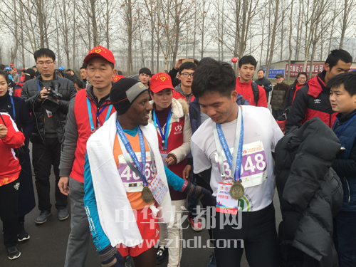 ????經過激烈角逐,21歲的小伙子李鴻浩以1小時12分56秒奪得了男子半程馬拉松第一名,張妮以1小時24分57秒奪得女子組冠軍。全程馬拉松男、女冠軍分別被來自埃塞爾比亞的兩位選手Bekele和Meskerm·Gutu·Tola以2小時16分40秒和2小時44分43秒奪得。