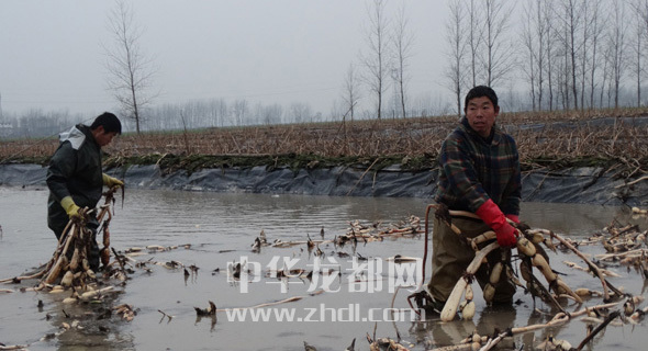????????昨日,沈丘縣周營鄉蘇樓村藕農孫進堂父子正在一個幾十畝大的池塘里收獲蓮藕。時下正值蓮藕收獲季節,該縣周營、白集、北城等鄉鎮都種植有蓮藕,一般畝產均在5000公斤左右。