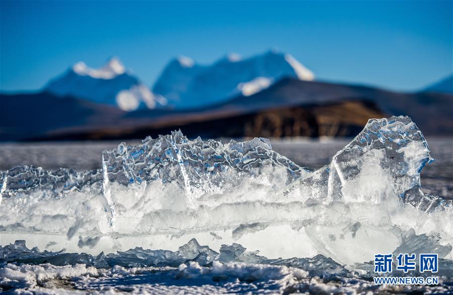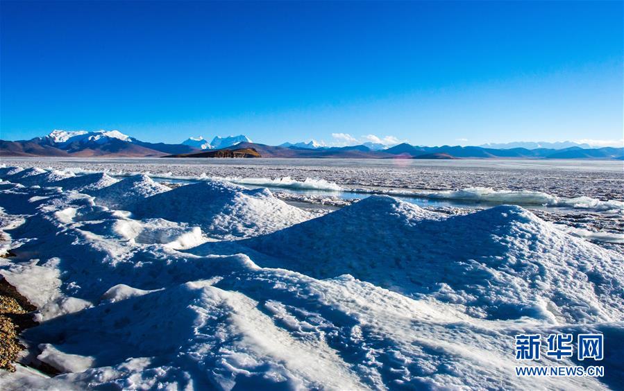 ????冰封的普姆雍措一景(1月19日攝)。海拔5010米的普姆雍措位于西藏浪卡子縣境內(nèi)。每年深冬季節(jié),普姆雍措都會(huì)出現(xiàn)美麗的冰封景觀。 新華社記者普布扎西攝