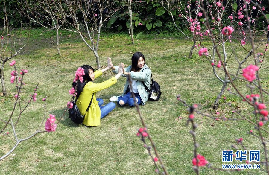 ????3月1日,游人在廣西賀州學院桃花苑欣賞桃花。早春時節,廣西南寧、賀州等地桃花綻放,吸引人們外出賞花,感受春的氣息。 新華社發(廖祖平 攝)