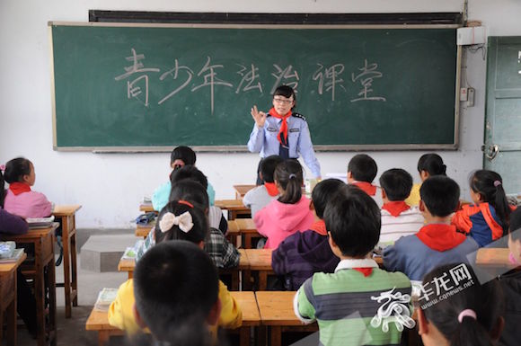 在青少年法治課堂上,志愿者們為孩子們進行普法教育。市司法局供圖 華龍網發