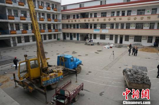 ????圖為23日上午,施工車(chē)輛進(jìn)入濮陽(yáng)縣第三實(shí)驗(yàn)小學(xué)(老校區(qū)),對(duì)學(xué)校廁所實(shí)施改造。 韓章云 攝