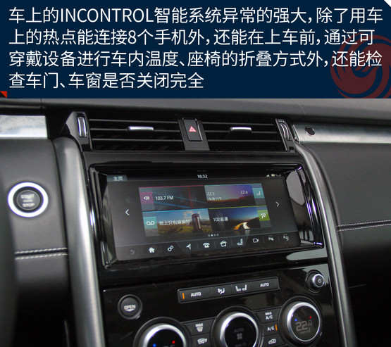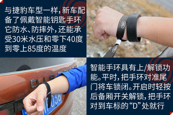在配置上,新車(chē)也做到了盡善盡美,像方向盤(pán)加熱、四區(qū)自動(dòng)空調(diào)、全景影像、英國(guó)之寶音響系統(tǒng)、后排娛樂(lè)系統(tǒng)、雙天窗它都有。智能系統(tǒng)方面,InControl系統(tǒng)除了常見(jiàn)的娛樂(lè)、媒體、熱點(diǎn)功能,還可以顯示并調(diào)節(jié)大量的車(chē)輛輔助信息,并支持遠(yuǎn)程控制。此外還可選裝智能手環(huán),實(shí)現(xiàn)更方便的隨身鑰匙。