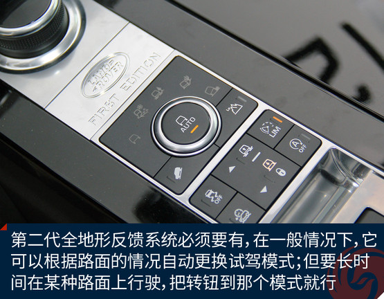 第二代全地形反饋系統(tǒng)必須有,它的特點(diǎn)是在任何非AUTO模式下,且車(chē)速低于50公里/時(shí),車(chē)身會(huì)自動(dòng)升高75毫米,以此應(yīng)對(duì)復(fù)雜越野需求。而全地形反饋系統(tǒng),同時(shí)能夠提升車(chē)輛的發(fā)動(dòng)機(jī)、變速箱、中央差速器和底盤(pán)的性能,使駕駛者可以根據(jù)具體地形選擇合適的駕駛模式。