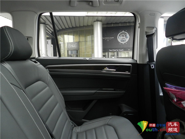 既然是7座SUV,那么就不得不說一下它的二三排的乘坐空間,我們先讓一米八左右的體驗者坐入第三排,調節第二排座椅的位置,讓體驗者膝部的空間一拳,頭部的空間四指,這樣坐姿完全不會難受;我們再讓體驗者坐到第二排,此時發現,腿部空間依然有一拳三指,頭部空間四指,真·七座不是吹出來的!
