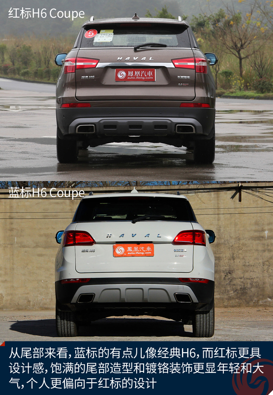 從車尾來看,個人認為新款的紅標好像比藍標更加年輕,可能是設計年款導致的,新一些的設計更加年輕,當然也不失沉穩,不過藍標的H6 Coupe看起來確實更具個性。紅標更符合大眾的審美。