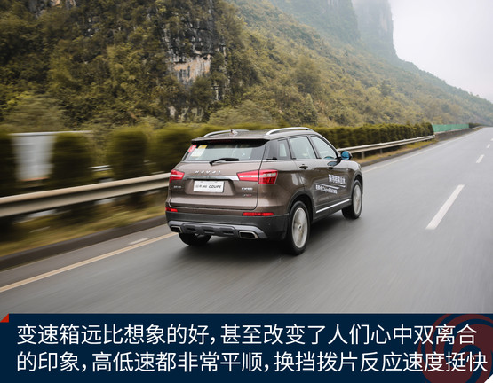 濕式7速雙離合器變速箱換擋非常順暢,比想象的好,不過深深踩下油門踏板的時候,變速箱的反應不像那些理想中的雙離合那么快,感覺油門到底之后換擋的過程要喘一下,不過這一定不能算是弊端,這個價位這樣的效果絕對是物超所值。