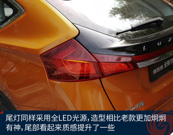車身的側面依然是溜背的造型,這也是這臺車最大的特點。車尾的造型也基本沒有太大的變化,但是細看卻有著質一般的飛躍,車燈為全紅色,車標變成了“納智捷”的英文字母,牌照架周邊的質感明顯比老款好看了許多,不過個人對這個左右貫穿的紅色裝飾保留意見,認為沒有它或許更好。