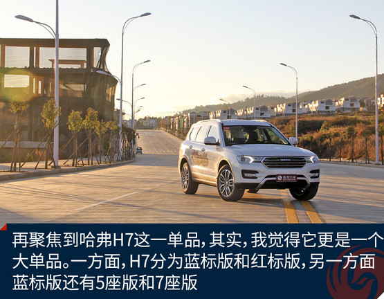 再聚焦到哈弗H7這一單品,其實,我覺得它更是一個大單品。一方面,H7分為藍標(biāo)版和紅標(biāo)版,另一方面,藍標(biāo)版還有5座版和7座版。關(guān)于定位,紅標(biāo)5座,大氣、豪華;藍標(biāo)5座,時尚、運動;藍標(biāo)7座,沉穩(wěn)、硬朗。據(jù)悉,未來不排除推出紅標(biāo)7座版車型,具體需要根據(jù)市場反饋來決定。
