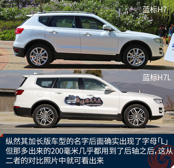 提到加長,我腦子中的第一反應(yīng)是軸距加長幾十甚至上百毫米,然而,哈弗藍標(biāo)H7L并不是這樣。縱然其加長版車型的名字后面確實出現(xiàn)了字母「L」,但那多出來的200毫米幾乎都用到了后軸之后,這從二者的對比照片中就可看出來。