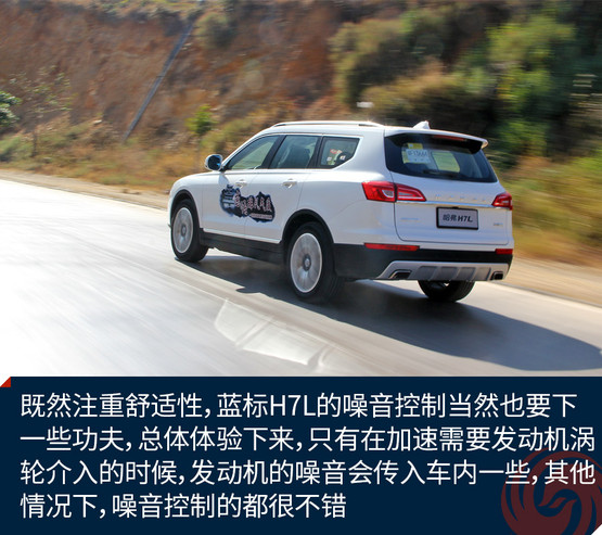 既然注重舒適性,藍標(biāo)H7L的噪音控制當(dāng)然也要下一些功夫,總體體驗下來,只有在加速需要發(fā)動機渦輪介入的時候,發(fā)動機的噪音會傳入車內(nèi)一些,其他情況下,噪音控制的都很不錯。