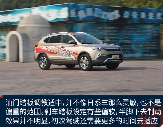 該車油門踏板調教適中,并不像日系車那么靈敏,也不是像德系車那樣偏重。剎車踏板初斷設定有些偏軟,半腳下去制動效果并不明顯,初次駕駛還需要更多的時間去適應。獵豹CS10采用了電子助力轉向,低速時方向盤的轉向力度很輕,日常倒車或者掉頭轉彎時更加從容。