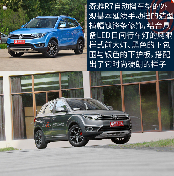 森雅R7手動擋車型的上市時間的時間在4月27日,而自動擋車型在11月7日下線,11月18日正式上市;在整體的外感與車身尺寸上,兩者基本沒有什么變化。前臉格柵采用橫幅鍍鉻條修飾,結合具備LED日間行車燈的鷹眼樣式前大燈、黑色的下包圍與銀色的下護板,搭配出時尚硬朗的風格造型。在車身尺寸上,它的長寬高分別為4305×1780×1655毫米,軸距為2600毫米。