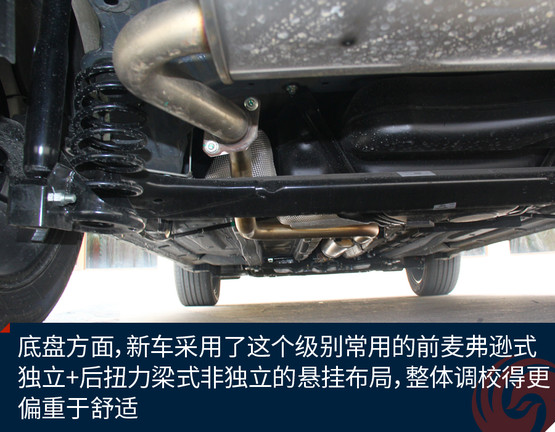 當我真正的把它開起來以后,首先給我的第一感覺就是它的底盤不松散,特別的緊湊,即便在高速駕駛,也能給我很大的信心。雖然懸掛不出意外的用了前麥弗遜+后扭力梁的懸掛組合,但整車的舒適性很好,過個溝坎都基本能化解掉。
