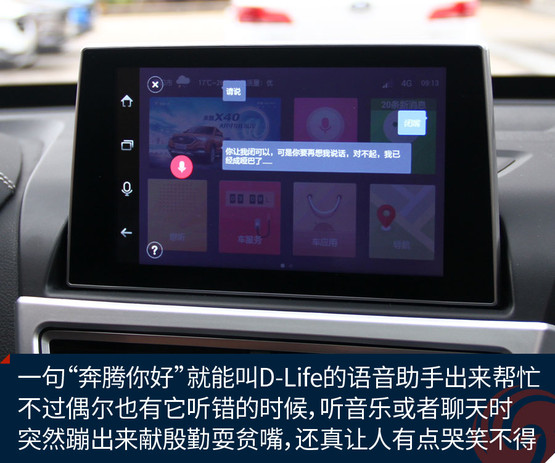 不過跟奔騰X40接觸兩天之后,會發現它大可不必在對手林立的市場中血拼顏值,靠實力不俗的獨門絕技一樣能夠輕松獲得一席之地。既然面向年輕用戶,豐富的車載娛樂系統很關鍵。大屏幕、手機互聯等等似乎已經是這類車的標配。奔騰X40更進一步,所搭載的D-Life系統讓我們看到了它引領潮流的勁頭。