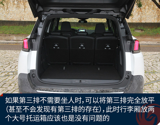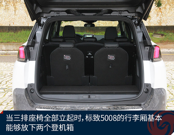 標(biāo)致5008提供了三排座椅還有另外一個顯著的好處是,可以豐富行李廂的使用方式。通過實際體驗可以發(fā)現(xiàn),當(dāng)三排座椅全部立起時,標(biāo)致5008的行李廂基本能夠放下兩個登機箱,但如果第三排不需要坐人時,可以將第三排完全放平(甚至不會發(fā)現(xiàn)有第三排的存在),此時行李廂放兩個大號托運箱應(yīng)該也是沒有問題的。