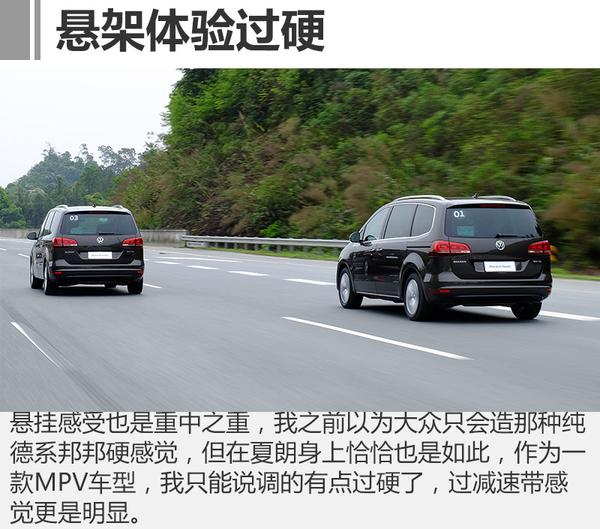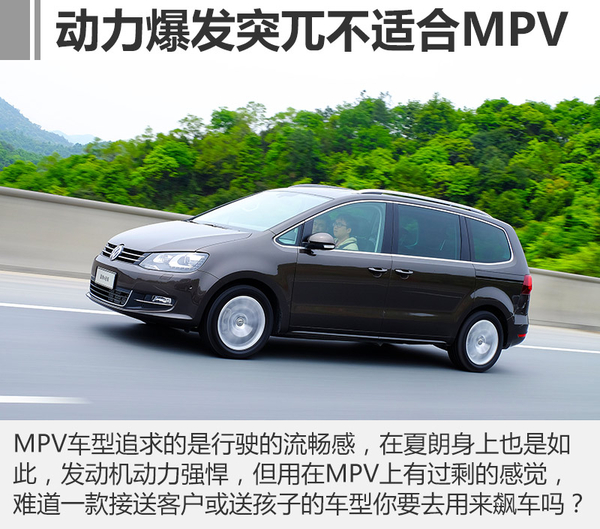 總的開(kāi)說(shuō),夏朗6座與7座版本一樣是一款易駕的車(chē)型,不管是公司專(zhuān)職司機(jī)還是家庭的主婦媽媽?zhuān)寄軓娜莸鸟{駛它穿梭都市鄉(xiāng)村。唯一感覺(jué)略有生澀的就是過(guò)于分裂的輸出動(dòng)力。前段綿軟后段用力過(guò)猛的動(dòng)力輸出特性實(shí)在不適合用在一款宜商宜家的MPV車(chē)型上。所以買(mǎi)家大可以選擇1.4T或1.8T車(chē)型,而且性?xún)r(jià)比更高,只不過(guò)6座版本不提供。