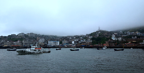 ????廟子湖島四周海水清澈,海洋生物資源豐富,是發展水產養殖的良好海域,廟子湖海域是舟山漁場的重要組成部分,是中街山漁場的中心所在。調查表明,有經濟魚類近200種、蝦類經濟種35種、蟹類經濟種近35種、海洋貝類經濟種25種、藻類經濟種30種。旅游資源有奇峰異石、觀海垂釣、捕魚嘗鮮、海灘拾貝等。廟子湖島的漁民畫以層次分明、海洋氣息和漁腥風味濃郁而著稱。山清水秀的廟子湖島吸引了大批文人墨客、丹青之士來島創作。廟子湖島相傳在清朝前期已有居民。清中期海寇蔡牽等擾海后,人跡不至。海寇平后,又有漁民上島從事漁業生產。相傳當時福建漁民最先來此島,見島上有一小廟,廟下有一水池。福建漁民稱廟為"廟子",稱水池為"湖",故名島為廟子湖。李鈺瑩/攝 東極晚霞