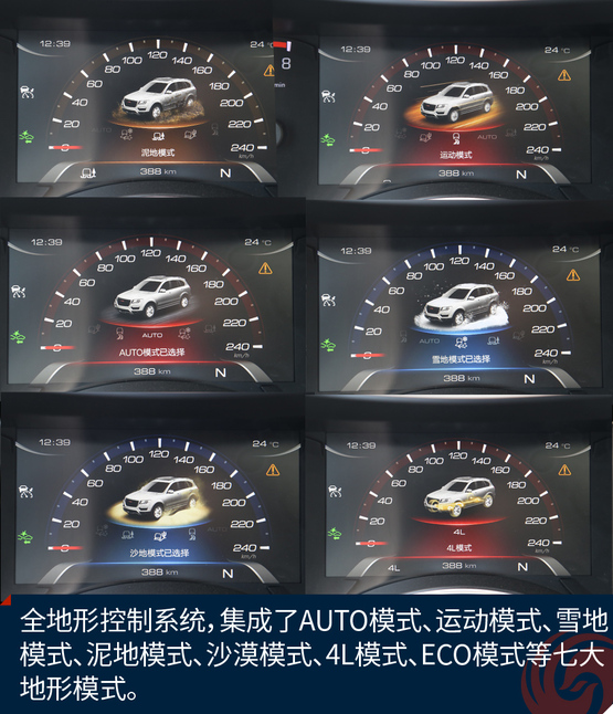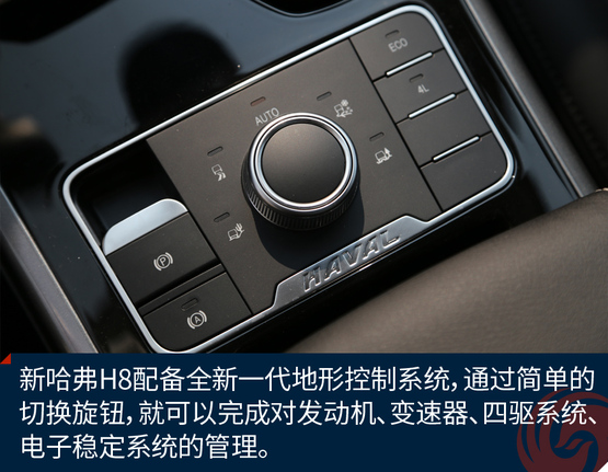 ????????四驅系統也是新哈弗H8的亮點,搭載全新一代全地形控制系統,可使駕駛者簡單的旋轉旋鈕,切換駕駛模式,這套系統集成了7大不同的駕駛模式。讓駕駛者可以輕松面對各種復雜的路況,這套系統的目的就是把復雜的操作簡單化。