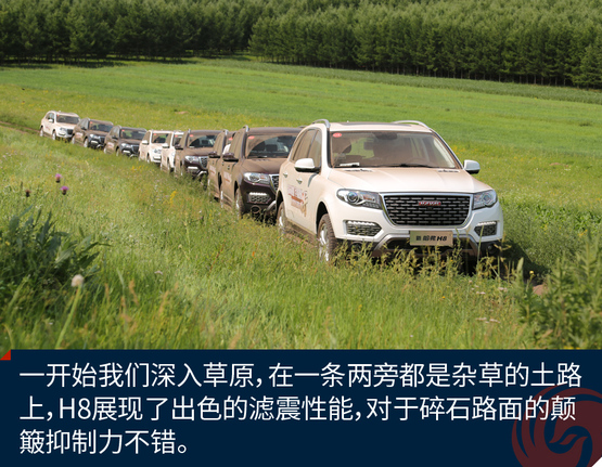 ????????經過一段輕度的草原穿越,這段路程主要是體驗H8的通過性和濾震性能,好戲才剛剛開始,通過這段路程我已經感受出了H8偏向城市型SUV的調教,底盤很穩健,但是懸掛比較硬朗。