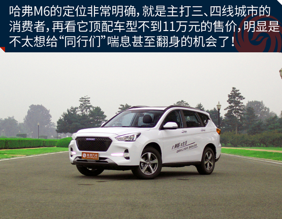 ????????但是在上周五,哈弗的最新款車型—M6后,基本就能緩解不少消費者對老款H6的“相思病”;這款新車雖說在外形上很不“哈弗”,但整車的很多方面基本與老款H6一致,應該說開上它之后還是那個熟悉的感覺,更驚喜的是,它的售價真實惠,全系8.98-10.98萬元的價格,甚至比老款H6還便宜!
