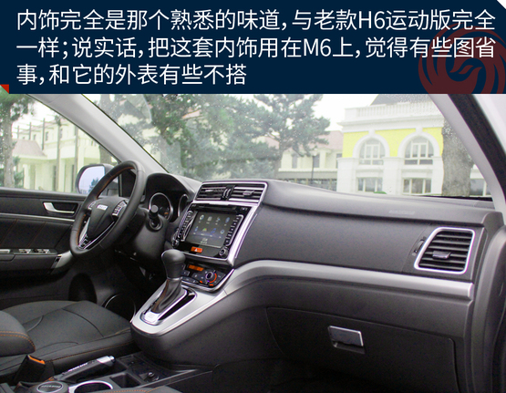 ????????車上的機械液壓助力轉向的力度有點沉,這點和老款H6特別的相似,長時間在低速行駛或者移庫挪車的時候挺廢胳膊,大老爺們長時間開都覺得酸,更何況瘦小的小女孩呢!所以從這點看出,M6會從配置以及更低的價格來吸引消費者,至于想這些其他的問題,大伙就別太吹毛求疵了,畢竟魚和熊掌不可兼得。