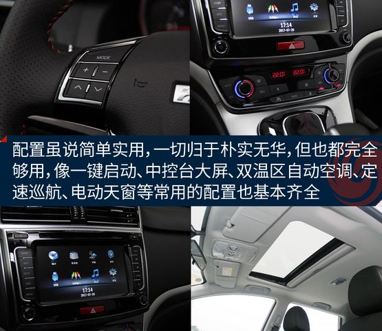 ????????內飾相對的看著沒那么大的驚喜,主要是它與老款哈弗H6車型的樣子基本保持一致,包括橫向空調出風口、大尺寸中控屏幕以及換擋桿造型。配置方面,該車配備了多功能真皮方向盤、防夾電動天窗、一鍵啟動、雙溫區自動恒溫空調、自動雨刷、自動大燈、主駕駛電動座椅等實用裝備,對于不到10萬的家用車來說太夠用了,沒必要再弄那些花里胡哨的東西,比單純為了追求噱頭和性價比要好,總結一句話就是:一切簡單就好!